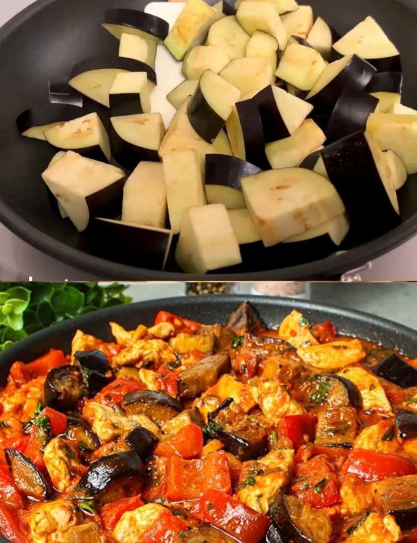 This dish is inspired by Mediterranean and Middle Eastern home cooking, where eggplants are a beloved staple and chicken is often paired with fresh vegetables and tomato-based sauces. Variations of chicken-and-eggplant stews or sautés can be found from Turkey to Lebanon to Greece, each with its regional twist. The balance of meat and vegetables reflects a cultural emphasis on wholesome, family-style meals that celebrate seasonal produce.