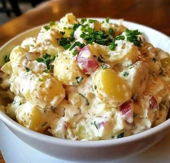 This potato salad is the kind of dish that instantly becomes a favorite—creamy, tangy, comforting, and unbelievably satisfying. With simple ingredients and effortless preparation, it’s the type of recipe that makes people go back for seconds… and then ask for the recipe. A true crowd-pleaser, perfect for gatherings or quiet evenings at home.