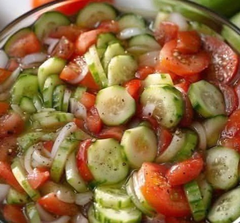 This Marinated Cucumber, Tomato & Onion Salad is a timeless dish loved for its simplicity, freshness, and vibrant flavors. The crisp cucumbers, juicy tomatoes, and sharp onions come together in a tangy-sweet marinade that enhances every bite. Perfect for family gatherings, summer barbecues, or as a light side dish, this salad delivers refreshing goodness with minimal effort.