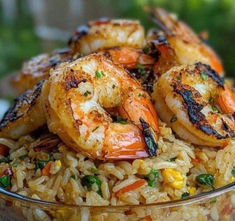This dish features juicy, golden garlic-butter shrimp layered over savory fried rice that absorbs rich butter, soy sauce, and aromatic vegetables. Each bite is a mix of tender shrimp, warm spices, and fluffy rice—rich, satisfying, and incredibly fragrant. It’s visually appealing with its vibrant vegetables and golden shrimp, making it as beautiful as it is delicious.