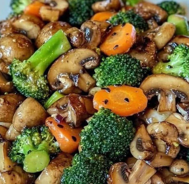 This vibrant stir-fry features a harmonious blend of textures: tender mushrooms, crisp broccoli, and sweet lightly-caramelized carrots. Each bite is coated in a glossy, aromatic garlic-soy glaze that elevates simple vegetables into something delicious, fragrant, and satisfying. Light yet comforting, this dish shines whether eaten alone or paired with a hearty base.