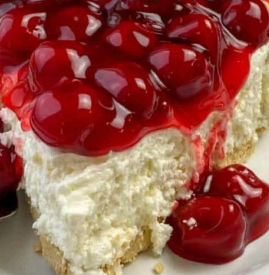 Imagine a velvety, cloud-like cheesecake filling resting on a crunchy, buttery graham cracker crust. The creamy interior is perfectly balanced by the sweet, glossy cherry topping that adds both tartness and vibrant color. Every slice is rich yet refreshing, making it the perfect dessert for any occasion.