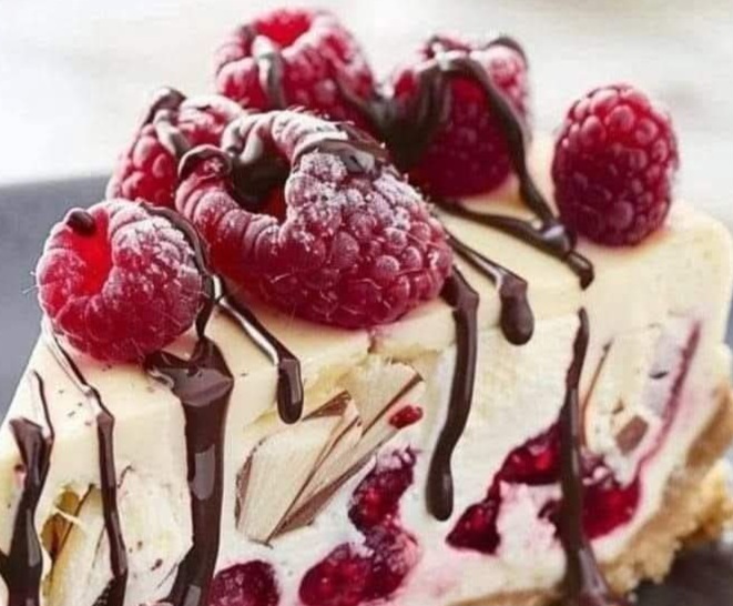 Cheesecake dates back to ancient Greece, but modern baked cheesecakes evolved in Europe and America. The pairing of chocolate and raspberries reflects classic European dessert traditions, symbolizing indulgence paired with freshness—often reserved for special occasions and celebrations.