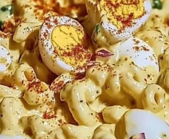 Macaroni salad has long been a staple of American comfort food, especially at summer cookouts and holiday gatherings. Deviled eggs, another classic, date back to the 18th century. Combining the two creates a nostalgic dish that reflects the American tradition of creative, hearty, and communal cooking.