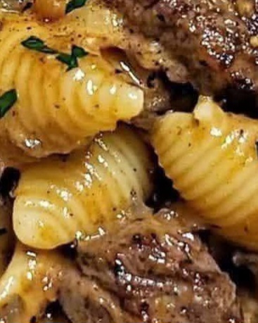 This dish features tender, juicy steak bites coated in a rich garlic butter glaze, paired with creamy, cheesy pasta shells that hold the sauce perfectly. Every bite delivers a balance of savory, creamy, and slightly garlicky flavors.