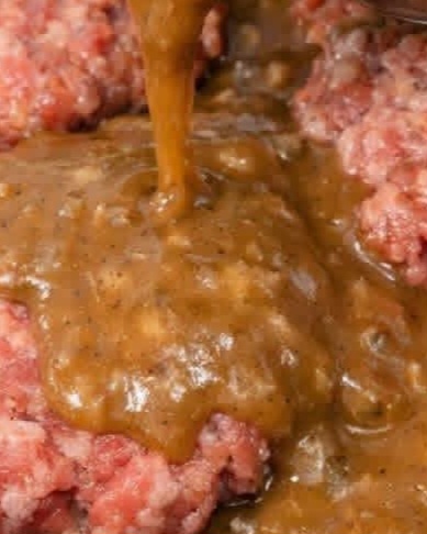 The hamburger steaks are juicy and well-seasoned, while the gravy is smooth, savory, and deeply flavorful. Everything comes together in one pan, allowing the meat’s juices to enrich the sauce naturally.